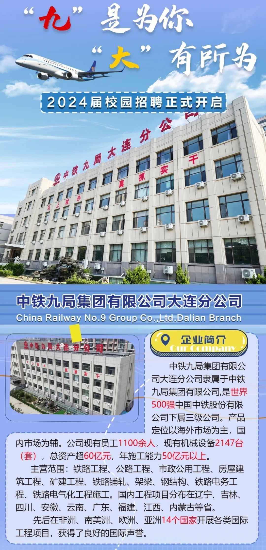 “九”是为你 “大”有所为 | 中铁九局大连分公司2024届春季校园招聘正式开启
