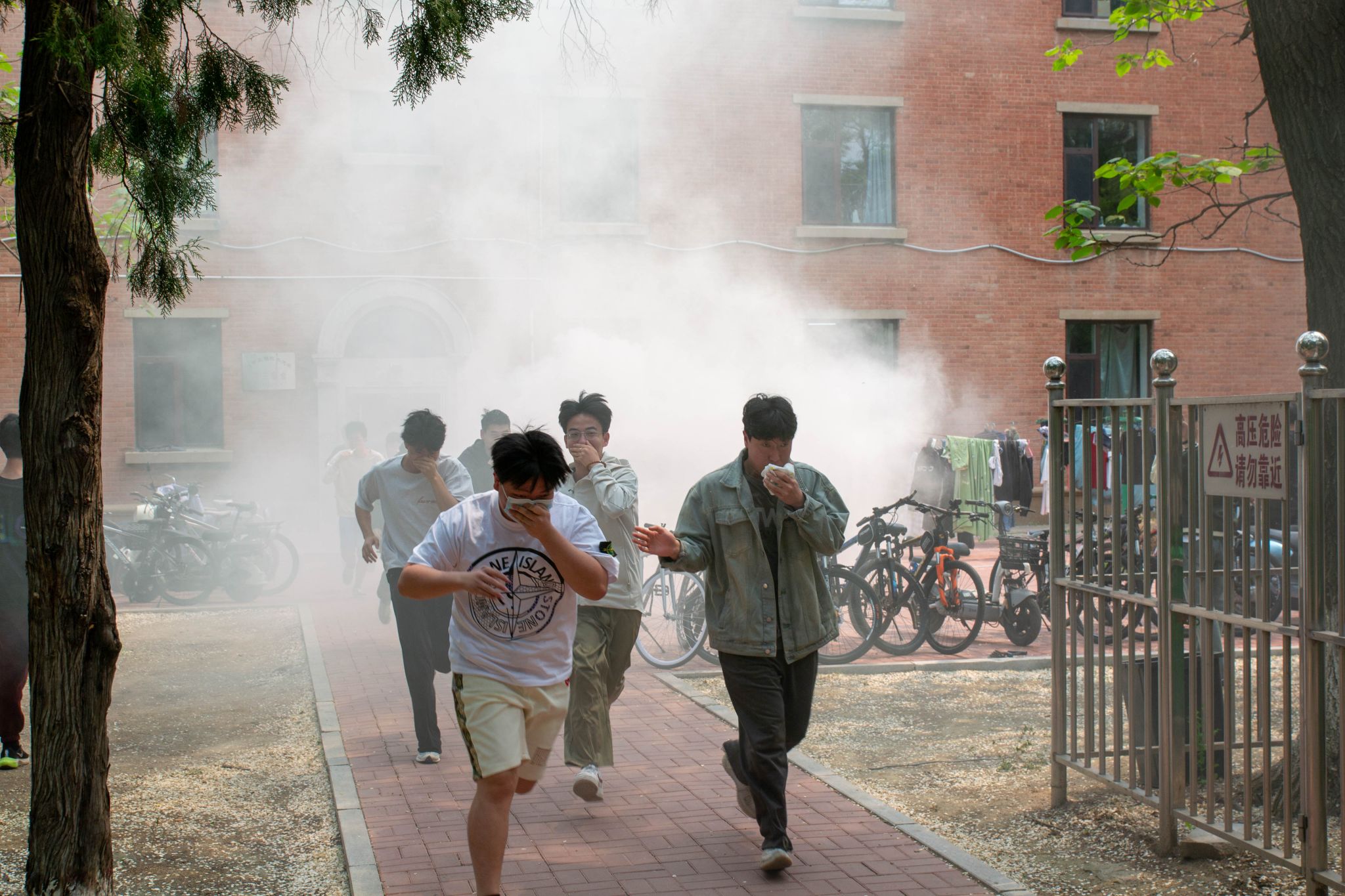 活动伊始,于英介绍了此次消防安全培训与应急模拟演练活动的目的和注意事项。接着,王亮科长详细讲解并演示了干粉灭火器的使用方法。同学们也积极参与进行实操演练,面对火源,精准完成灭火操作。灭火演练结束后,同学们在中华路校园3舍进行了安全疏散模拟演练,演练同学迅速用毛巾捂住口鼻、低姿快速通过烟雾区,充分展现了日常安全教育的成果。