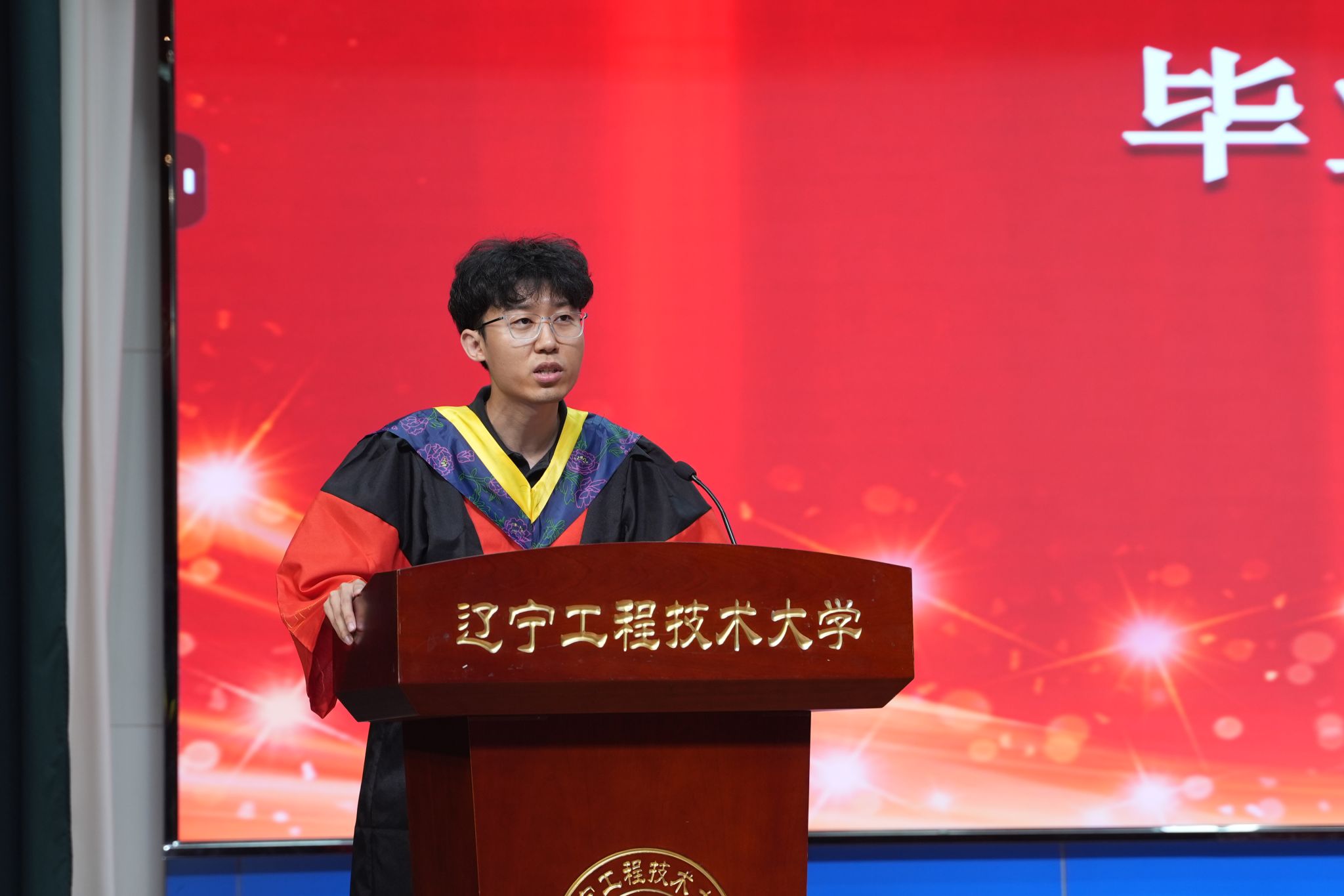 毕业生“我最喜爱的老师”石强代表全体教师发言,他向同学们表达最热烈的祝贺和最诚挚的祝福,希望同学们前程似锦的同时,更希望同学们幸福快乐,永远能有自己的热爱,活出独一无二的精彩人生。