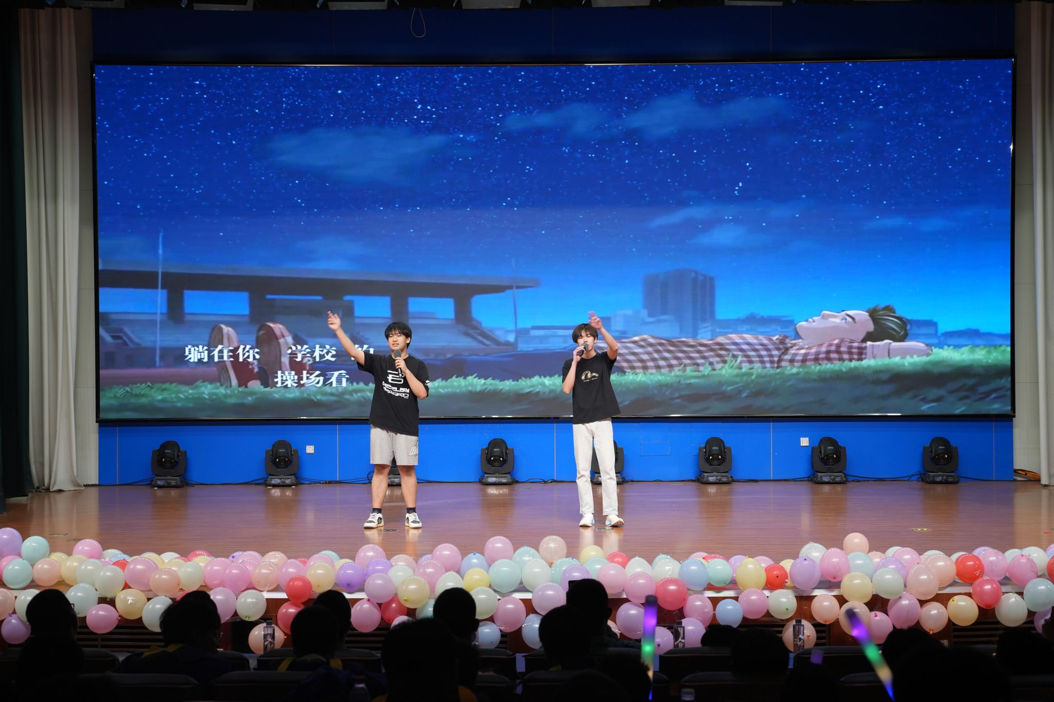 精心准备的毕业晚会。王一鸣和敖钰博的《等你下课》用温柔的旋律唤醒校园记忆。