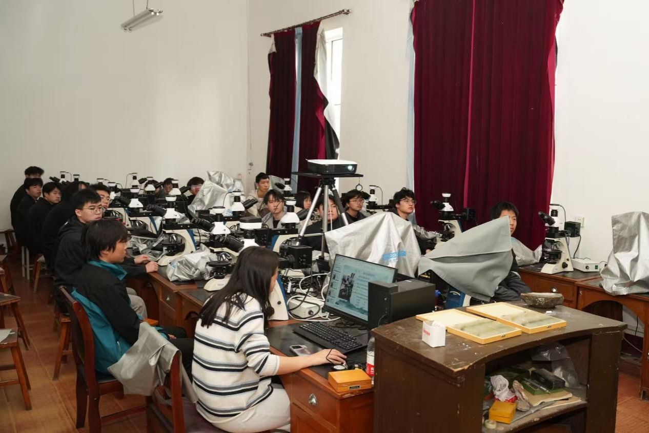 致远楼403室的偏光显微镜室是此次活动的又一亮点。依托辽宁省矿产资源绿色开发重点实验室,这里配备三十余台奥林巴斯BX51/BX53专业偏光显微镜。