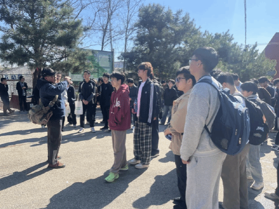 作为医巫闾山余脉,海棠山地区出露了典型的中生代花岗岩地貌,是辽西地区重要的地质走廊。此次研学将专业课堂搬进了山野。研学活动开始,地质科学与工程系主任尹业长进行了动员,他强调,野外实践是地质专业人才培养的关键环节,要求全体学生在实践中检验课本理论,锤炼专业素养。随后,张亚明老师围绕地质科学与工程系系旗以及地质锤、罗盘、放大镜的象征渊源,勉励大家传承地质人的专业根脉与奋斗传统。