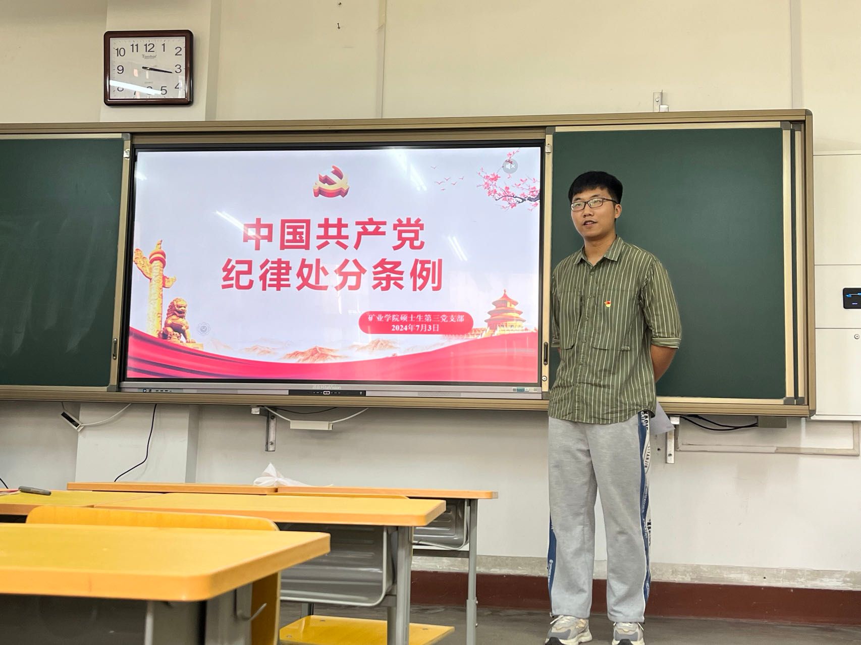 硕士生第三党支部于新华楼103室开展了“党纪党规刻我心”知识竞赛主题党日活动。本次活动由支部书记张玉龙同志主持,支部全体党员及入党积极分子代表参加本次活动。