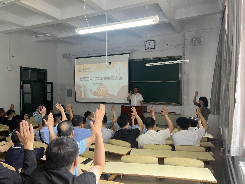 教职工大会暨工会会员大会在致远楼125召开,党委书记乔和主持会议。