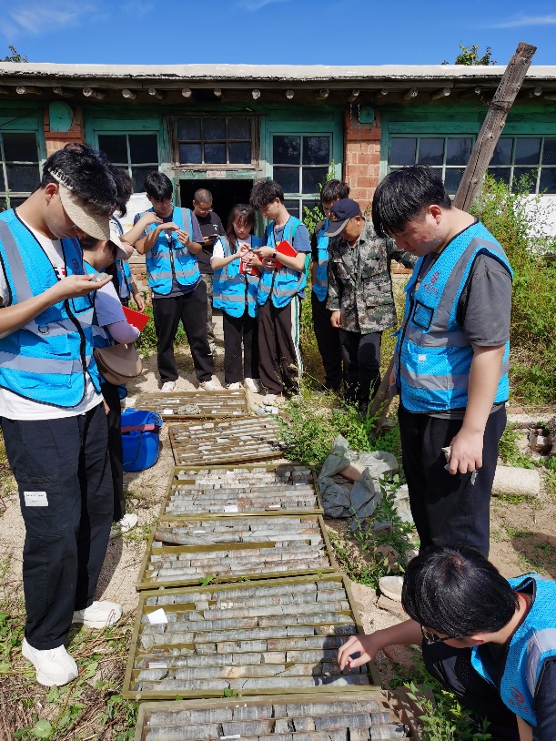 2023年9月19日上午,在五队刘显高高工的带领下考察了盖州大东沟金矿。同学们详细了解了大东沟金矿的成因、产状,并且进行了钻井岩芯录井工作的实训。