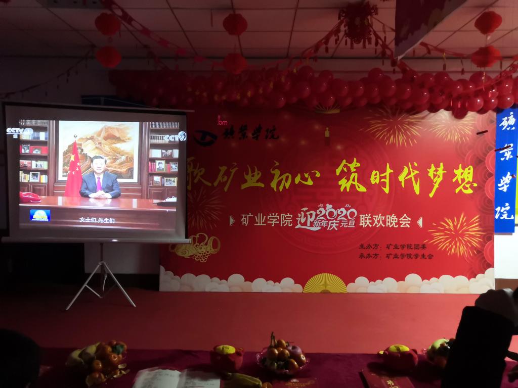 晚会开始,韩军院长首先致辞,韩院长对全院师生在2019年所做的工作与努力给予了充分肯定,向大家致以美好的新年祝福,激励同学们在追寻矿业初心的征途中努力拼搏,实现每一位学子的新时代梦想。