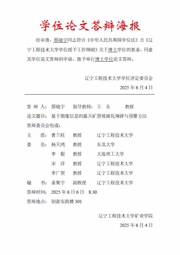 2025年博士学位论文答辩公告(答辩人:邢晓宇)