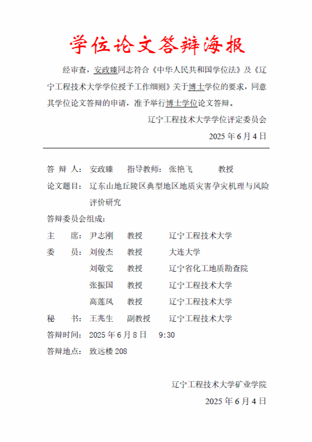 2025年博士学位论文答辩公告(答辩人:安政臻)
