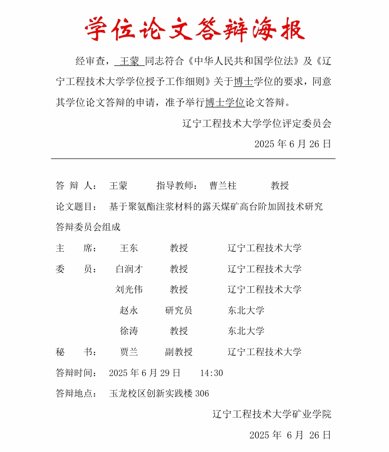 2025年博士学位论文答辩公告(答辩人:王蒙)