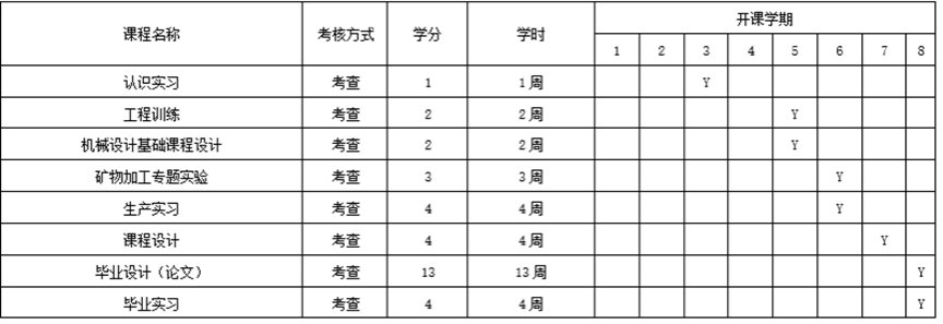 矿物加工工程专业集中实践教学环节安排