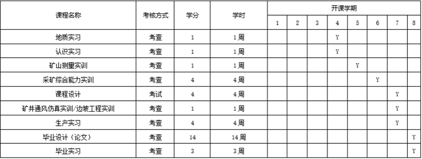 采矿工程专业集中实践教学环节安排
