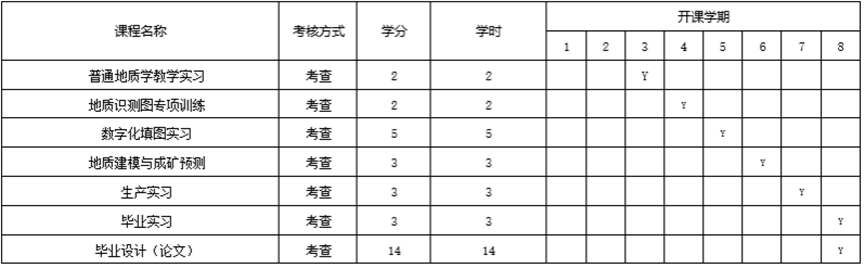 资源勘查工程专业集中实践教学环节安排
