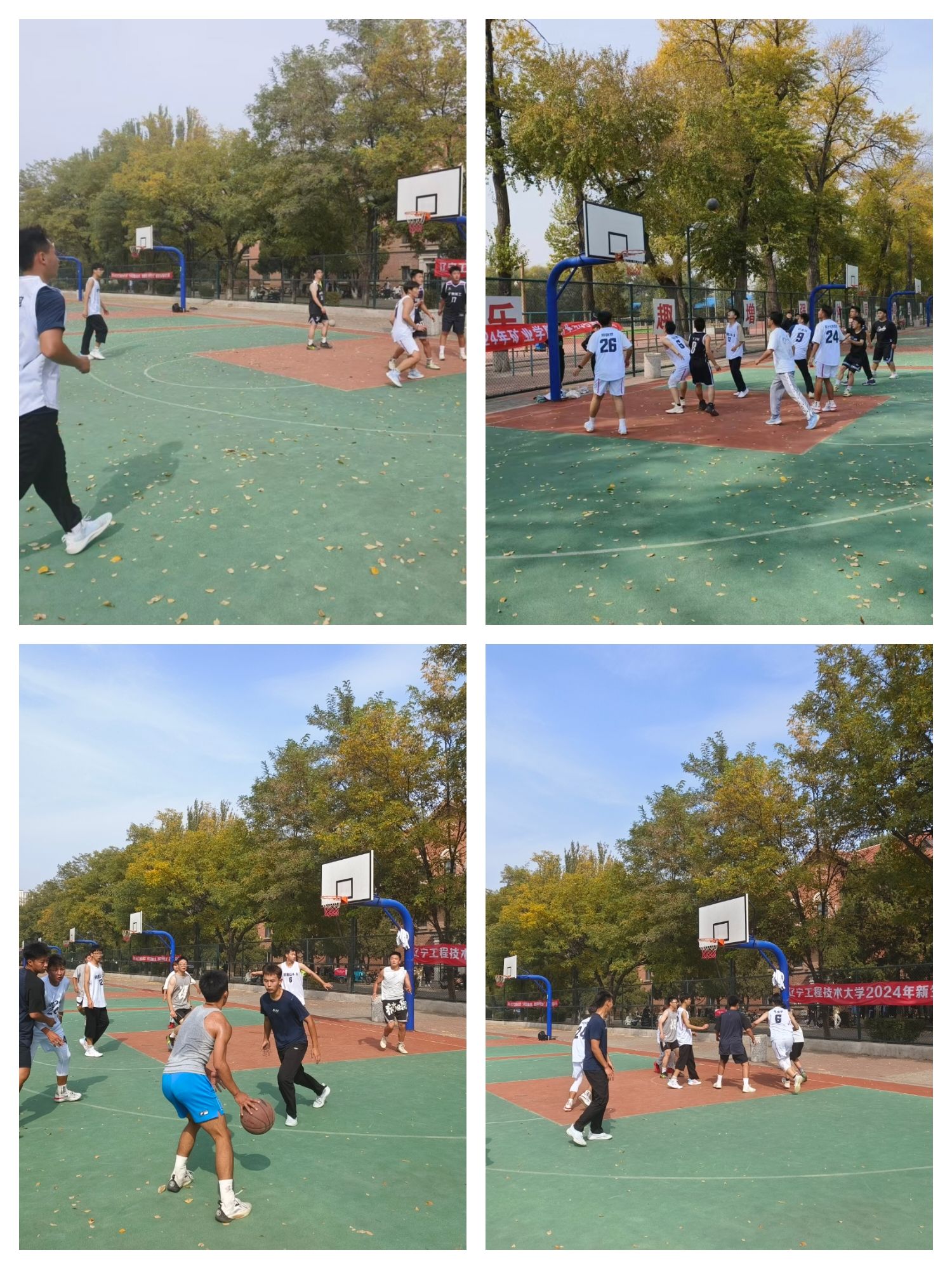 10月9日中午,小组淘汰赛正式开始。各队迅速进入比赛状态。比赛过程中,每队队员积极进攻、严密防守,同时队员们积极跑动,配合默契,运球突破底线防守,投球入篮。球场上每一个投篮,每一个抢断,每一个盖帽,都凝聚着他们的汗水和努力,大家斗志昂扬,全力以赴,不仅留下他们的精彩瞬间,而且展现了体育竞技的精神。随着比赛的落幕,有3支队伍进入到决赛的角逐、比拼。