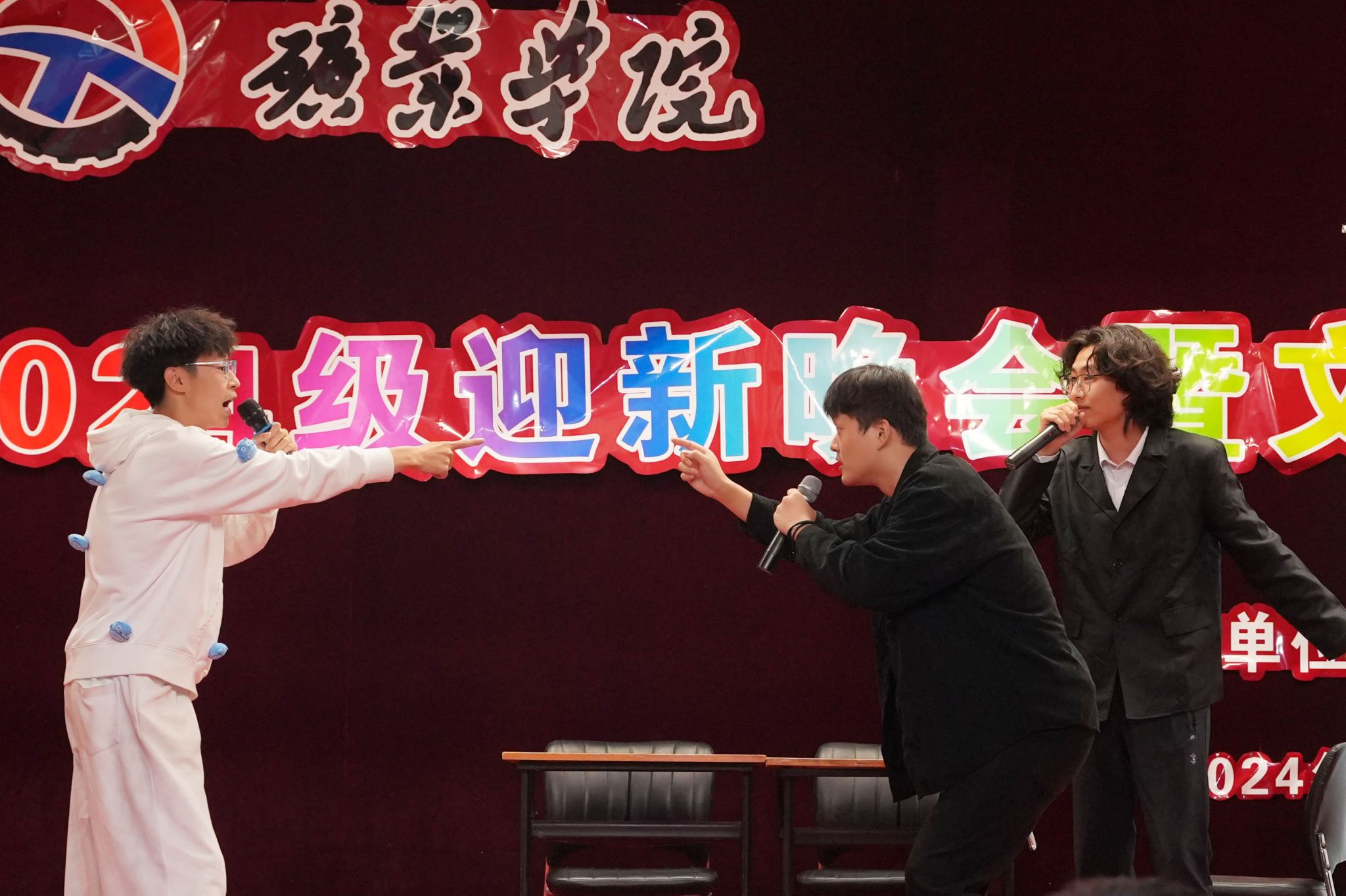 随后,各班副班及学生会成员携手登台,以一曲合唱《NEW BOY》向全体新生致以热烈欢迎。舞台上下的界限在这一刻消融,矿业学子们的团结与热情化作阵阵歌声,从四面八方汇聚,共同绘制了一幅青春洋溢、团结向上的美好图景,为晚会划伤了圆满的句号。