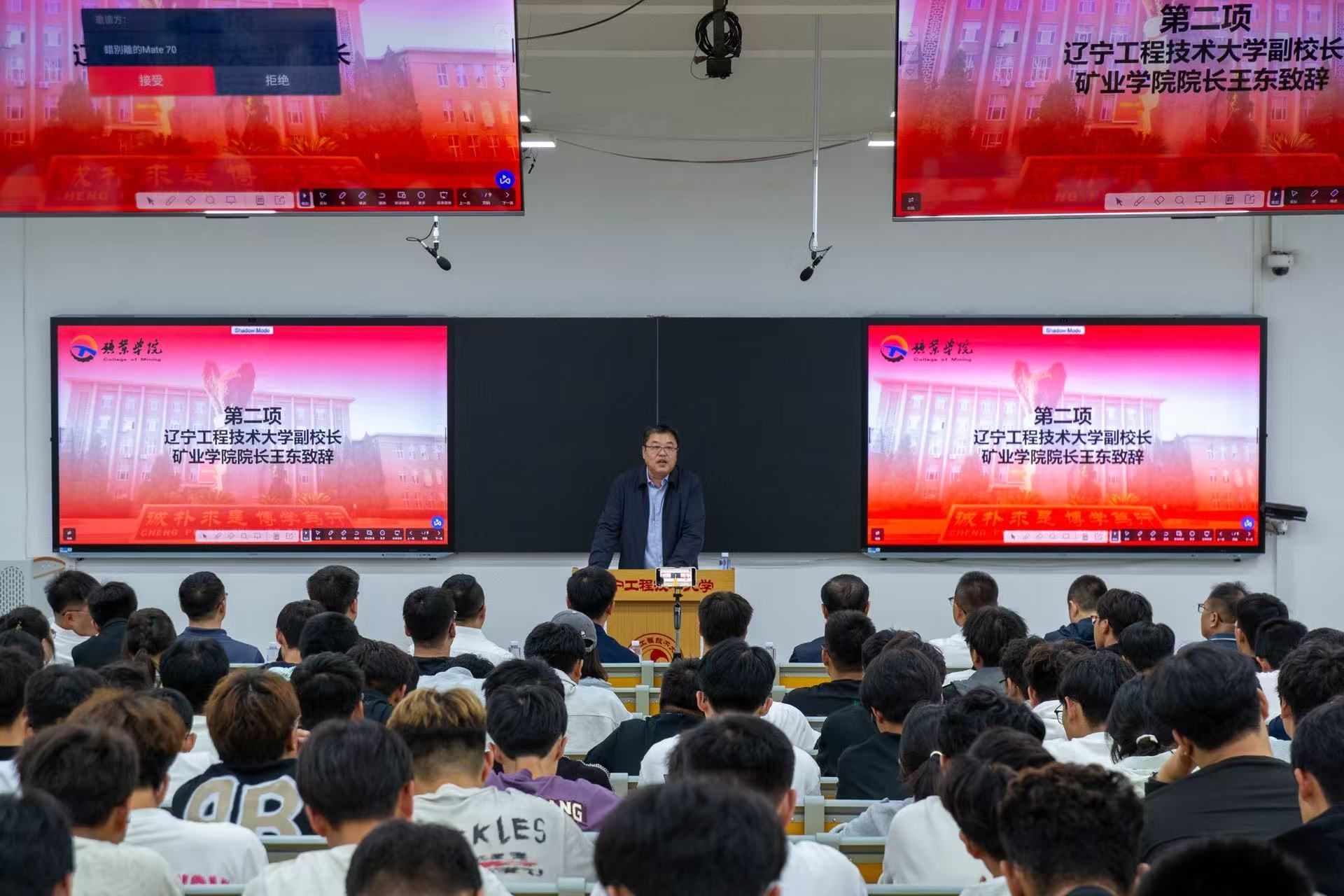 国歌庄严回荡,典礼的序幕徐徐拉开。激昂的节奏里,新生们的使命感与责任感悄然升腾。校党委常委、副校长兼7JavBus 院长王东致欢迎辞,他对2025级新生的到来表示热烈欢迎,并向新同学介绍了7JavBus 在矿业领域的深厚学科积淀与卓越科研成果,鼓励新生深耕专业、夯实基础,为投身国家矿业事业做好准备。