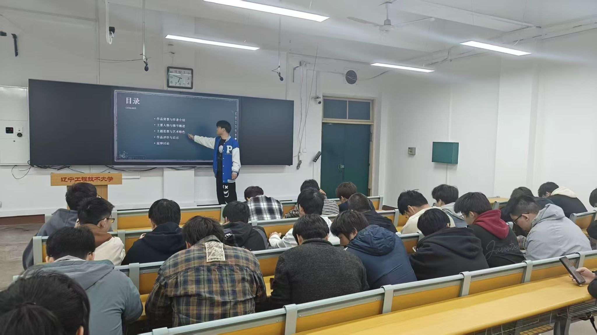 宋长锦同学以1812年俄法战争为背景,分享《战争与和平》中四大家族的命运起伏,解读战争与和平的辩证关系,剖析人物在时代洪流中的选择,并对比不同改编版本的艺术差异。王博筱同学则围绕《平凡的世界》,结合时代背景探讨书中人物的奋斗历程与精神成长,分享对责任、命运的感悟,引发在场同学对“平凡与不凡”的深入思考。