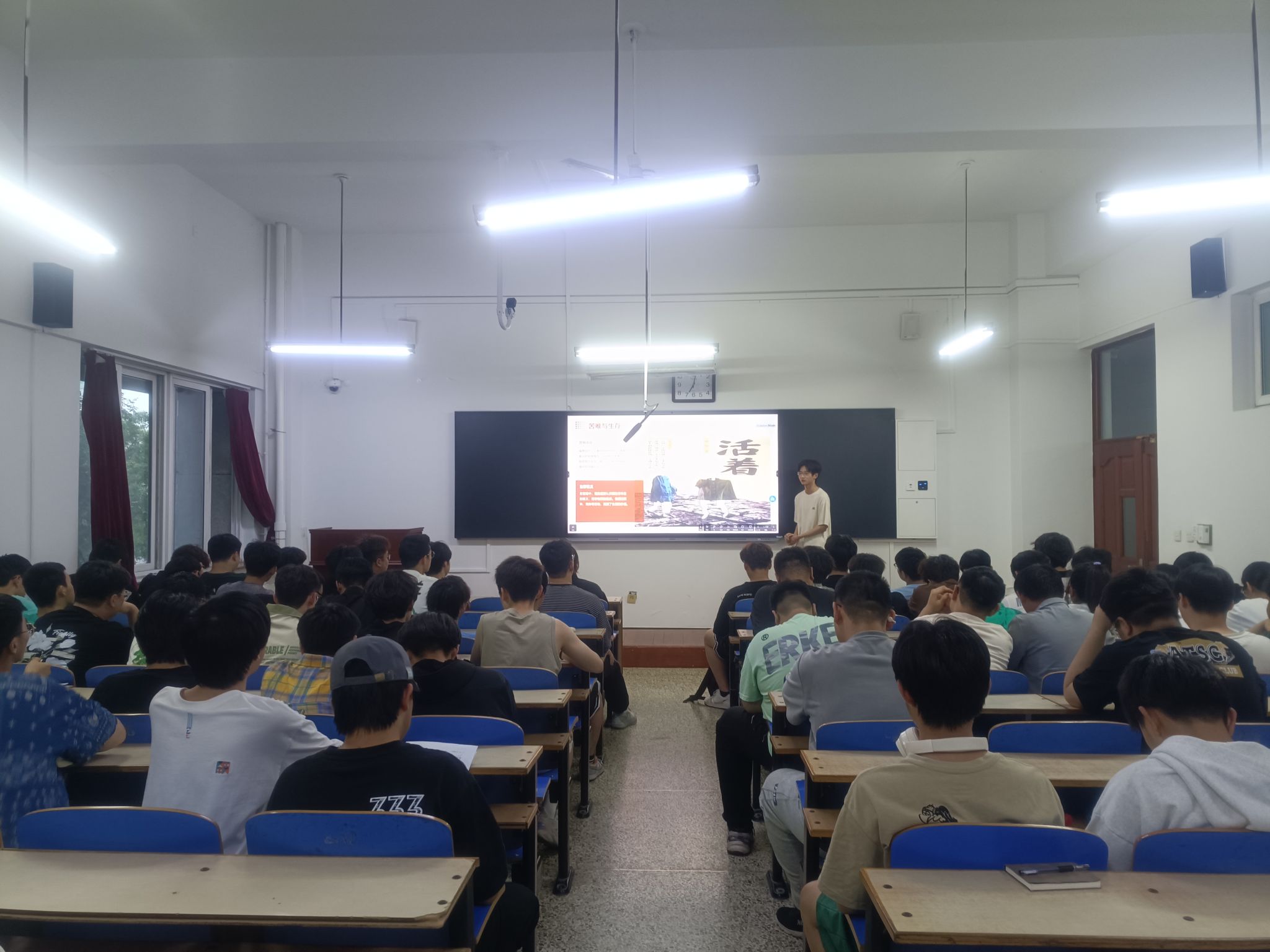 素拓部王垚鑫担任主讲人,活动中他用他独特的视角和深刻的感悟,为在座的矿业学子带来了一场别开生面的阅读盛宴。他深入剖析了书籍《平凡的世界》,并表达了他对这本书关于人生、道德和哲学的思考,之后结合自己的经历和观察,提出了许多独到的见解。通过此次读书分享会,矿业学子更加深刻的理解了阅读不仅是为了获取知识,更是为了培养自己的思考能力和精神品质这一句话的含义。