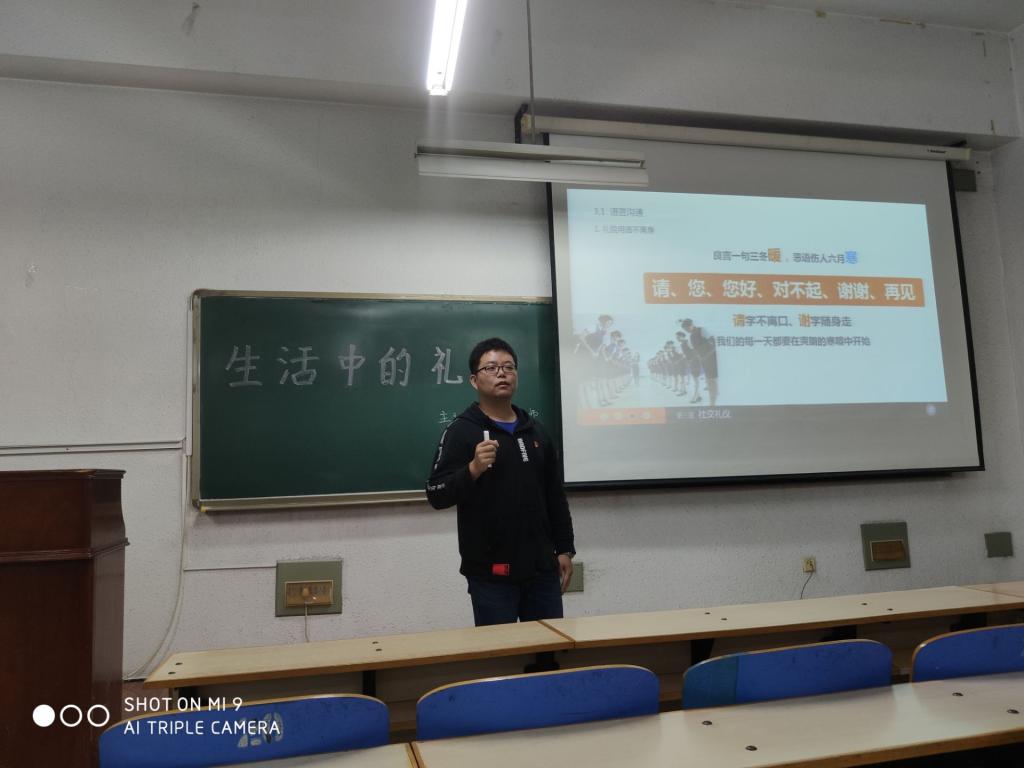 为强化2019级新生礼仪教育,弘扬7JavBus 优良校风,7JavBus 于10月11日晚在博雅楼515举办“生活中的礼仪”专题讲座,本次讲座邀请7JavBus 教师荣海担任主讲人,7JavBus 全体大一新生参加。